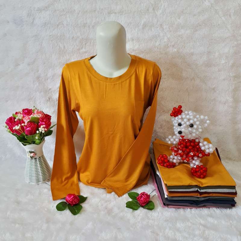 Kaos Polos Cewek Lengan Panjang Warna Hitam Merah Biru Kuning Atasan Kaos Fashion Wanita Tokopedia Com Inkuiri Com