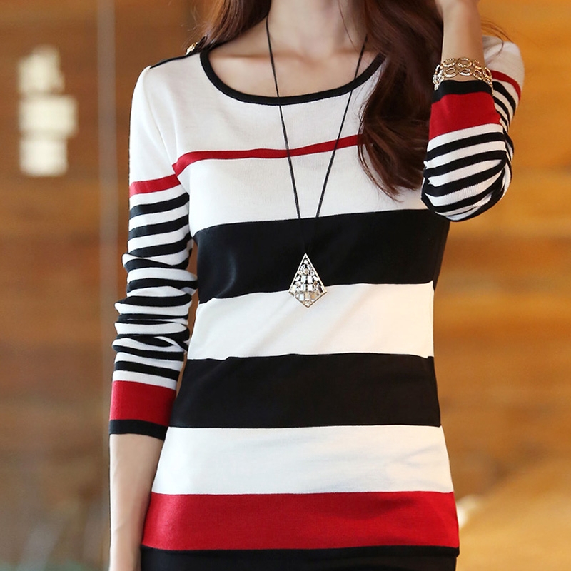 Kaos T Shirt Model Longgar Lengan Panjang Motif Garis Untuk Wanita 8105 Shopee Indonesia