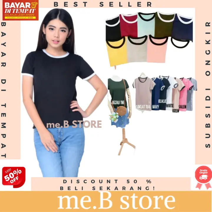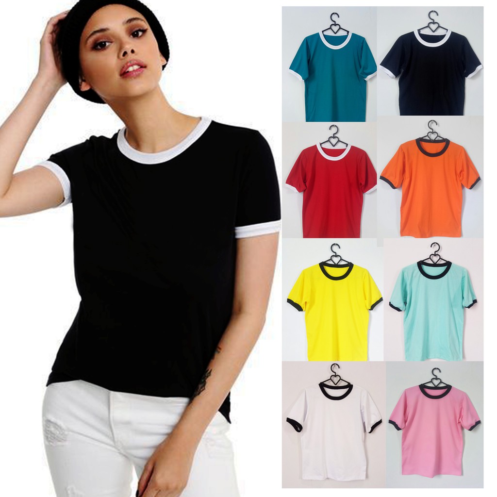 Jual Premium Grosir Fashion Ringer Baju Atasan Kaos T Shirt Polos Lengan Pendek Murah Wanita Kekinian Online Januari 2021 Blibli