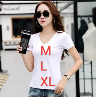 Baju Kaos Polos Vneck Wanita Lengan Pendek Big Size L Xl Xxl Kaos Polos Wanita Kaos Seragam Lazada Indonesia