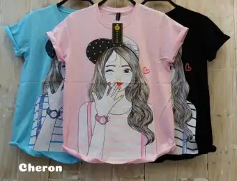 Harga Spesifikasi Promo Cheron 15909 Kaos Oblong Wanita Baju Distro Cewek Atasan Kekinian Murah Lengan Pendek