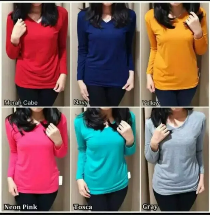 Jual Kaos Wanita Lengan Panjang Baju Atasan Kaos Kaos Polos Vneck Original Di Lapak Millennia Fashion Bukalapak