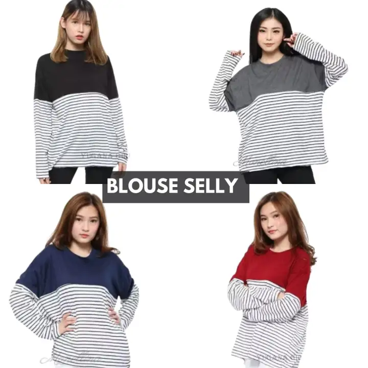Jual Baju Kaos Lengan Panjang Blouse Atasan Wanita Terbaru Korea Pinup Js Di Lapak Jeshop Bukalapak