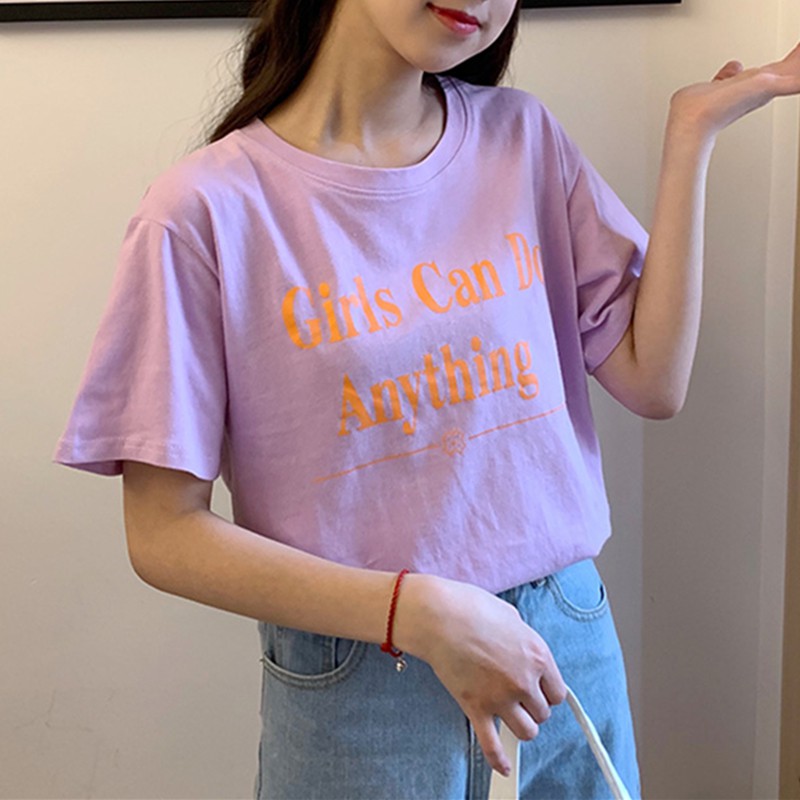 Wg Shop Kaos T Shirt Wanita Lengan Pendek Model Longgar Round Neck Versi Korea Motif Print Tulisan Shopee Indonesia