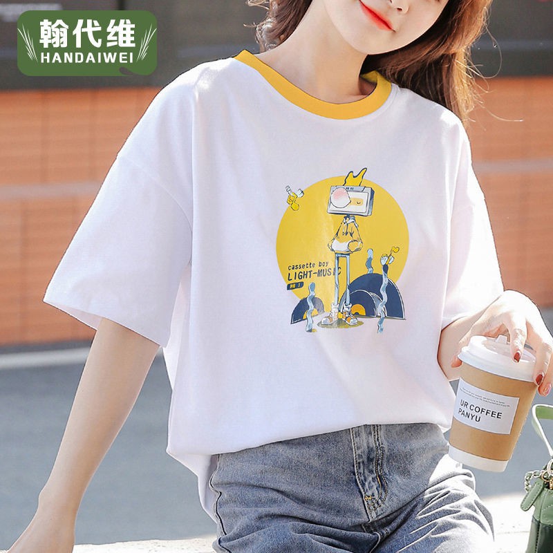 2020 T Shirt Top T Shirt Kaos Wanita Longgar Senyum Putih Lengan Pendek Gadis Baru Wanita Generasi Wbxt211 T Shirt Aliexpress