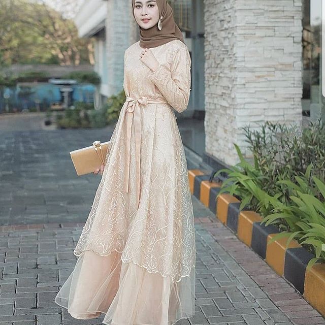 Model Baju Gamis Pesta Satin Brokat Cream Pesta Gaun Pengiring Pengantin Pengiring Pengantin