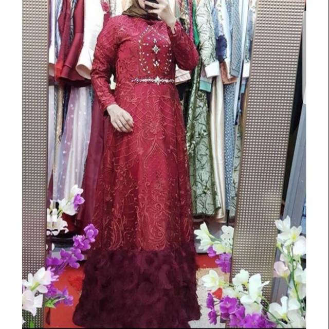 Harga Termurah Gamis Brokat Maxi Latesha Maroon Baju Muslim Wanita Merah Darah Modis Murah Shopee Indonesia