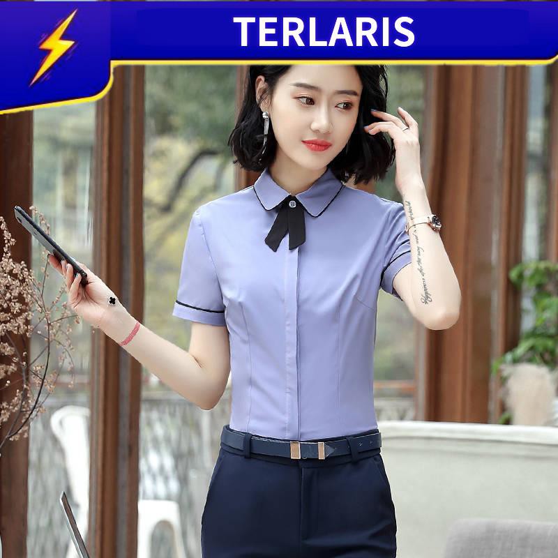 Office Wear Casual Shirt Korean Shirt Chiffon Blouse Blouse Putih Kemeja Putih Lengan Pendek Wanita 2019 Musim Panas Pakaian Profesional Baru Pakaian Perangai Korea Chiffon Formal Perkakas Shopee Malaysia