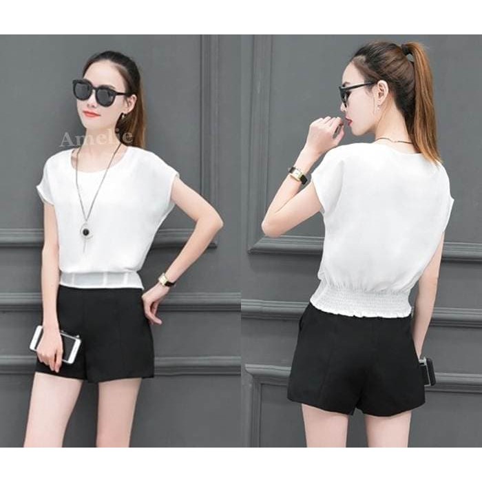 Jual Setelan Korea Baju Sabrina Blouse Kaos Atasan Celana Pendek Offwhite Jakarta Barat Boutique Preloved Tokopedia