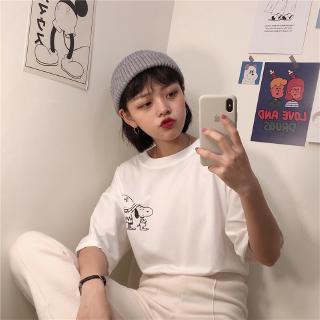 Shopee Lazada Kaos T Shirt Longgar Simple Wanita Lengan Pendek Motif Print Snoopy Gaya Korea Shopee Indonesia