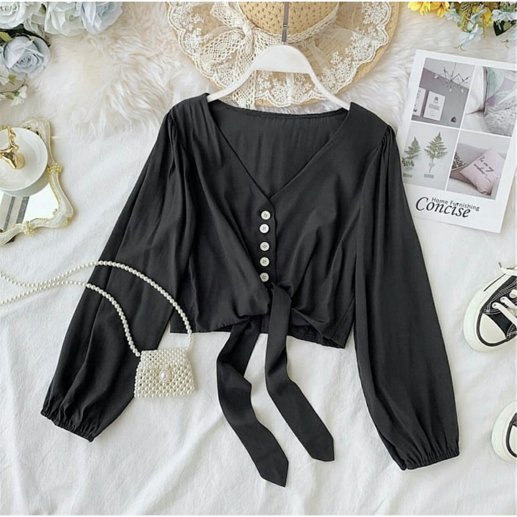 New Sale Baju Atasan Dasi Kemeja Wanita Putih White Blouse Korea Import Tunik Seller Shopee Indonesia
