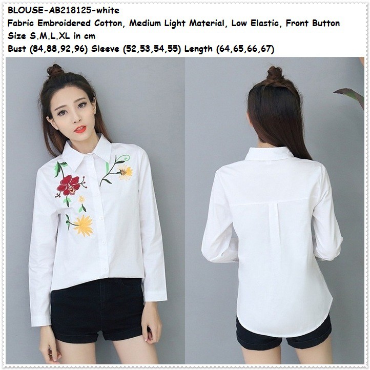 Baju Atasan Kemeja Putih Pakaian Wanita Korea Import White Embroidery Shirt Shopee Indonesia