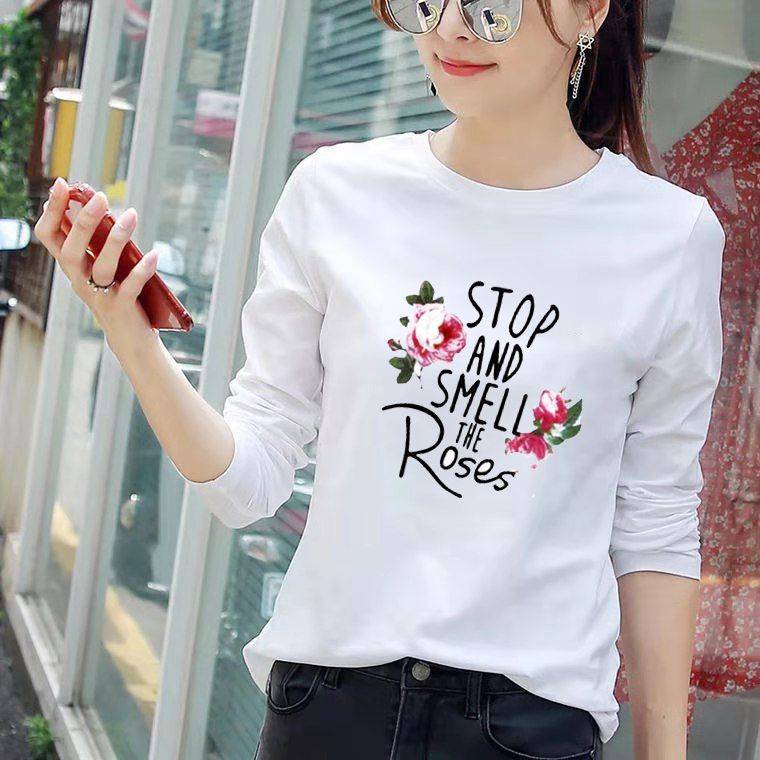 Kemeja T Seluar Panjang Wanita Wanita Lengan Panjang Korea Longgar Longgar Baju Asas Baju Putih Shopee Malaysia