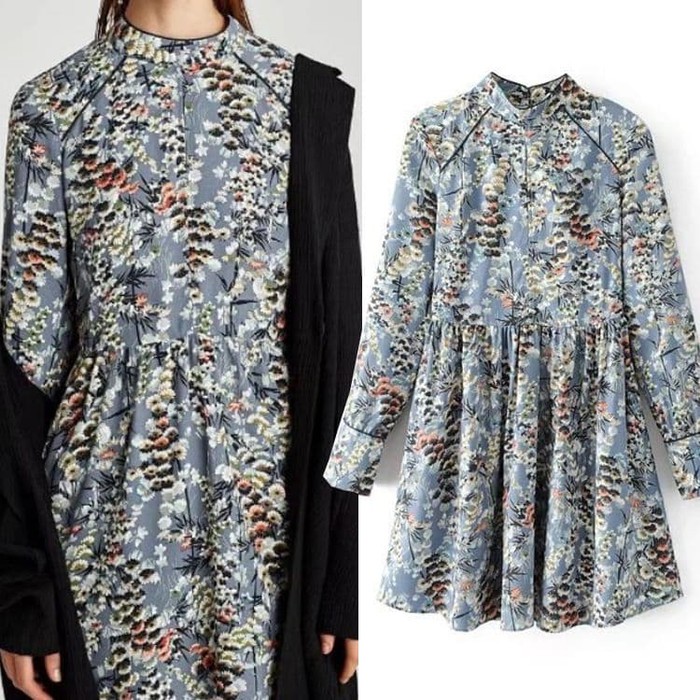 A743541 Baju Sopan Midi Flare Dress Flower Motif Bunga Cantik Elegan Fashion Wanita Korea Import Shopee Indonesia