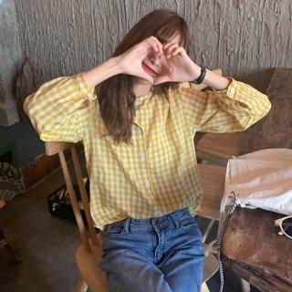Kemeja Lengan Panjang Motif Kotak Kotak Warna Kuning Merah Untuk Wanita Shopee Indonesia