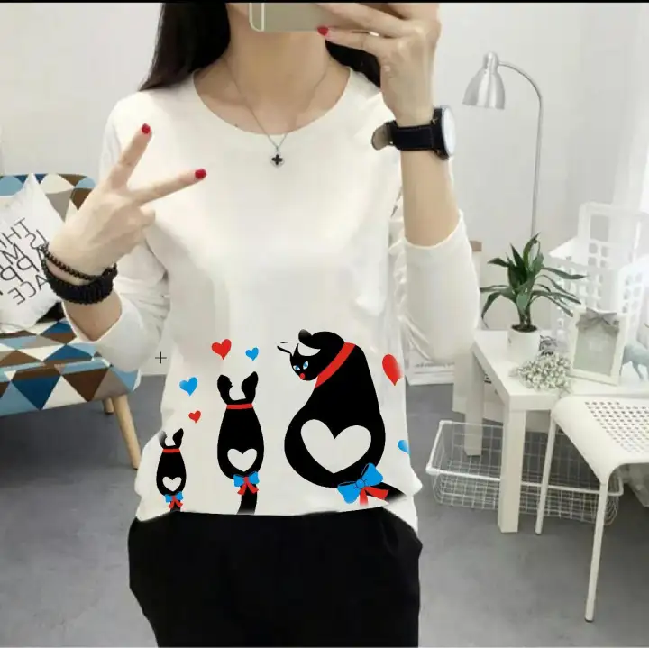 Kaos Wanita Murah Terbaru Baju Atasan Blouse Cewek Wanita Remaja Lengan Panjang Kaos Cute Cat Kaos Shopee Indonesia