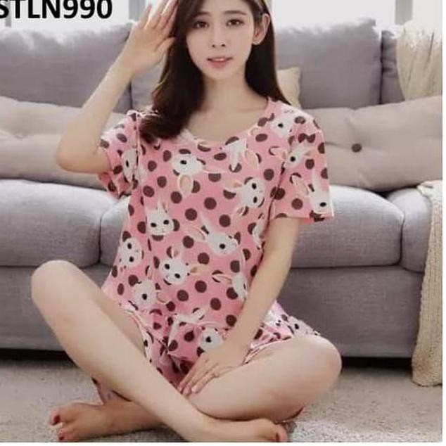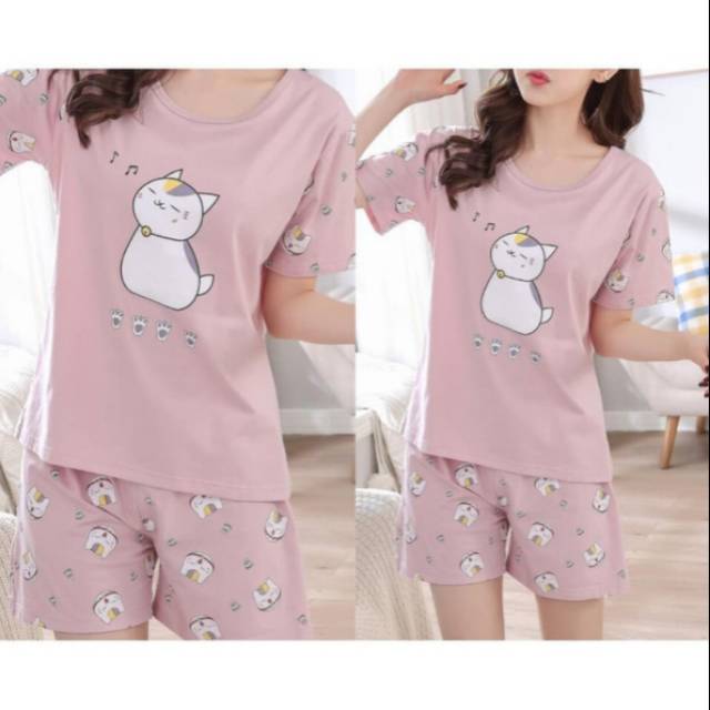 Baju Tidur Piyama Lucu Murah Wanita Remaja Abg Spandex Lengan Pendek Pink Kucing Shopee Indonesia
