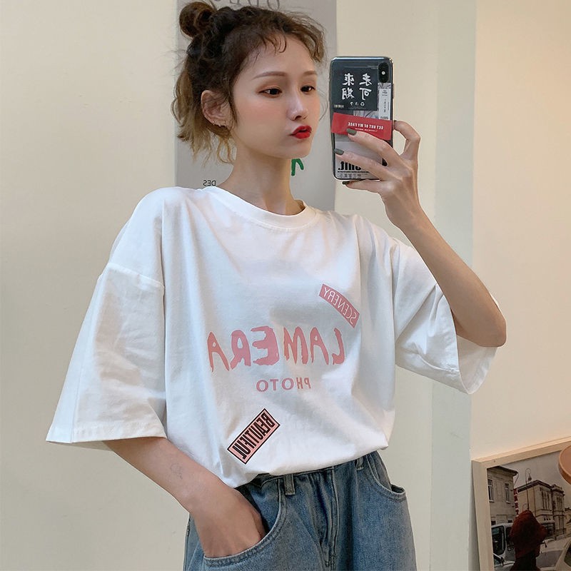 Wanita T Shirt Lengan Pendek 2020 Musim Panas Versi Korea Fesyen Longgar Baju Pelajar Putih Lengan Pendek Liar Shopee Malaysia