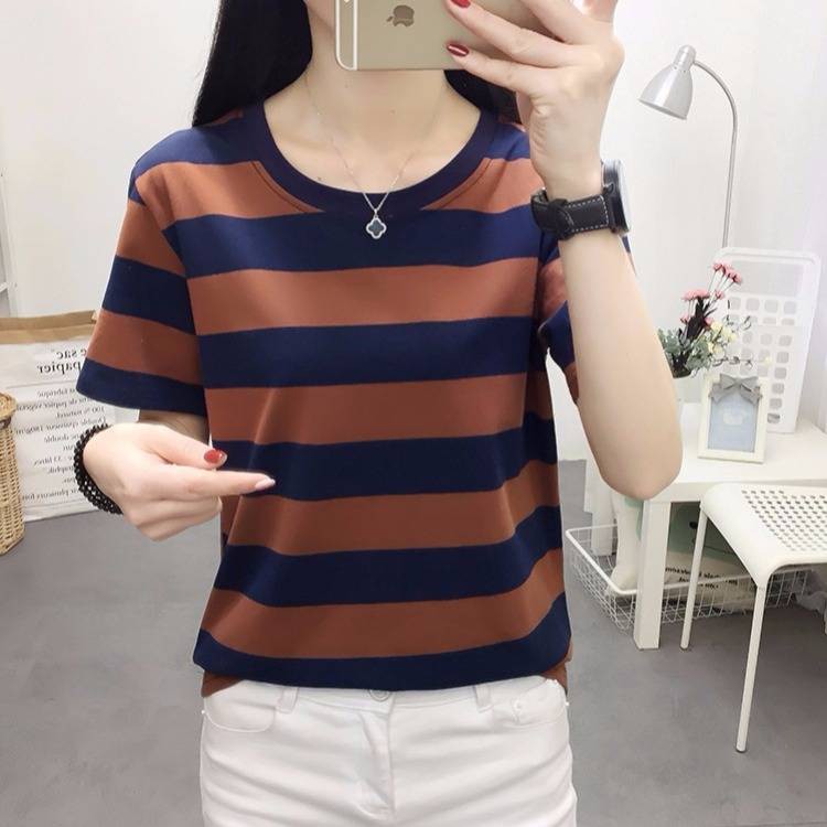 Baju T Shirt Perempuan Baju Kemeja Wanita Lengan Pendek Wanita Musim Panas 2020 Baru Besar T Shirt Berjalur Korea Longgar Wanita Pakaian Luar Shopee Malaysia