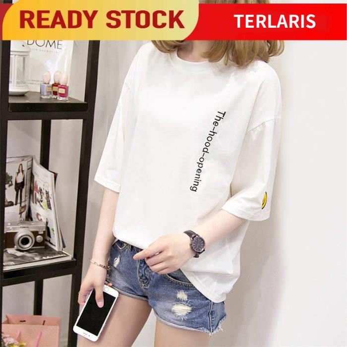 Baju Perempuan Blouse Murah Baju Perempuan Murah T Shirt Lengan Pendek Wanita Korea Musim Panas Separuh Lengan Panjang Longgar Plus Ukuran Wanita Hitam Dan Putih Senyum Kemeja Bawah Shopee Malaysia