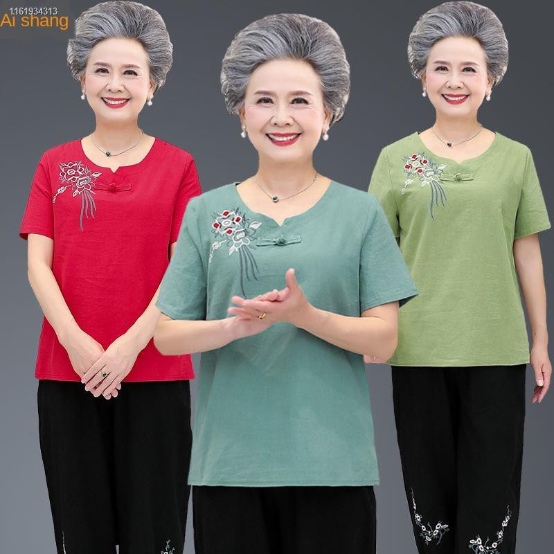 Diskaun Baju T Shirt Bersulam Lengan Pendek Wanita Dan Kapas Dua Helai Nenek Xia T Untuk Bahagian Atas Pakaian Ibu Ibu Shopee Malaysia
