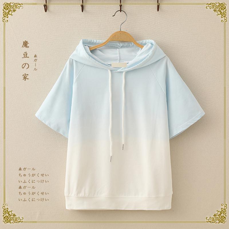Fashion12 14 16 Tahun Pelajar Sekolah Menengah Sekolah Menengah Warna Gradien Kapas Lengan Pendek Wanita Blaus Wanita Musim Panas Sweater Bertudung Shopee Singapore