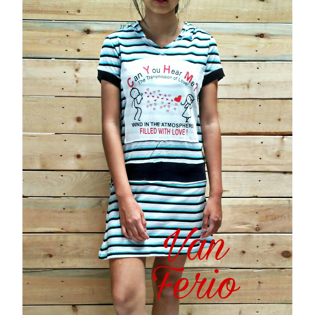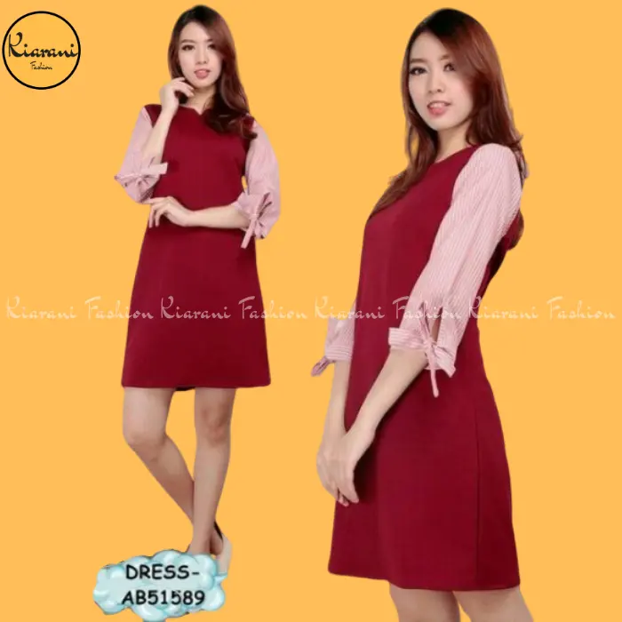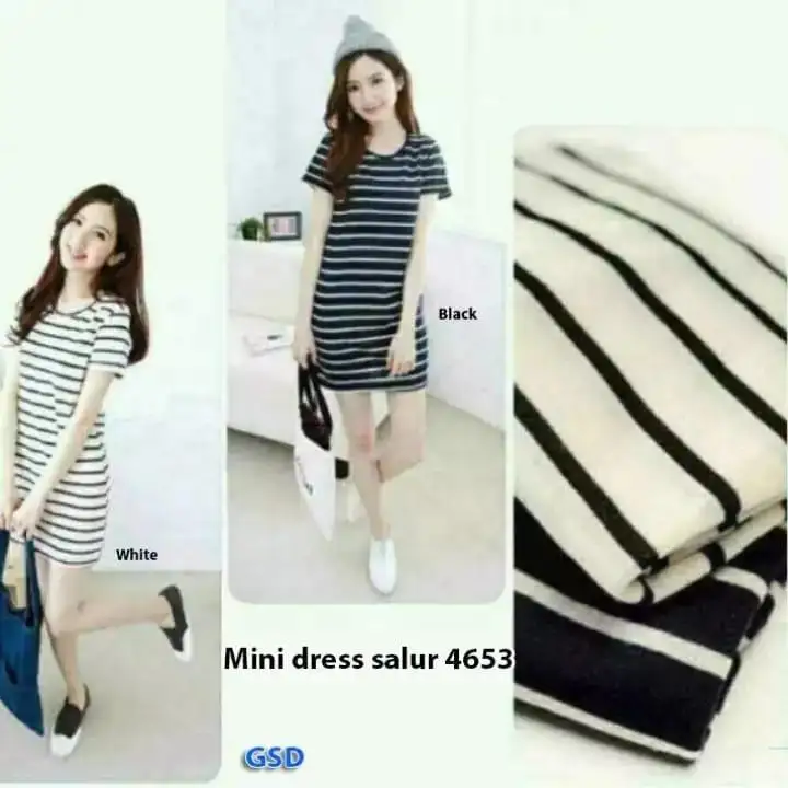 Mini Dress Salur Dress Wanita Dress Basic Dress Selutut Baju Terusan Remaja Mini Dress Wanita Dress