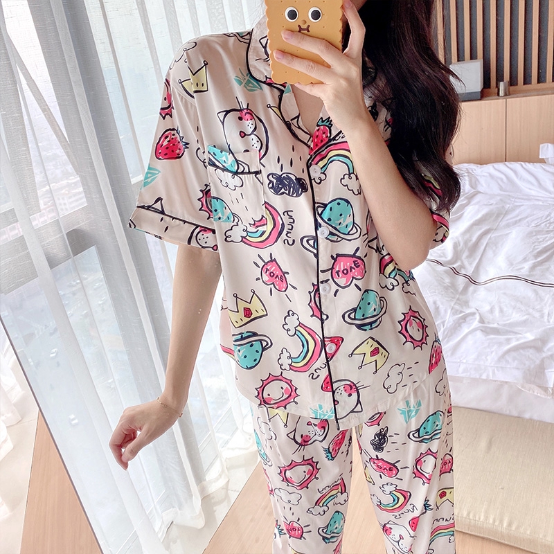Ready Stock Piyama Wanita Baju Tidur Wanita Lengan Pendek Celana Panjang Import Piyama Baju Tidur Fashion Wanita Bukalapak Com Inkuiri Com