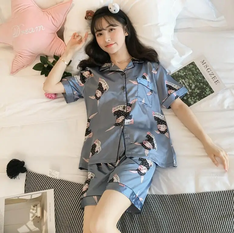 Piyama Wanita Musim Panas Fashion Kisi 2pc Korea Cardigan Lengan Pendek Wanita Kasual Baju Tidur Layanan Rumah Sesuai Dengan Pijamas Wanita Piyama Set Aliexpress
