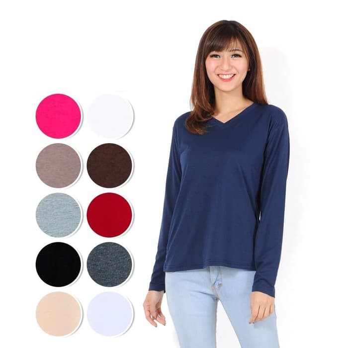 Jual Kaos Wanita Lengan Panjang Kaos Polos Wanita Vneck Baju Kaos Wanita Kekinian Di Lapak Millennia Fashion Bukalapak