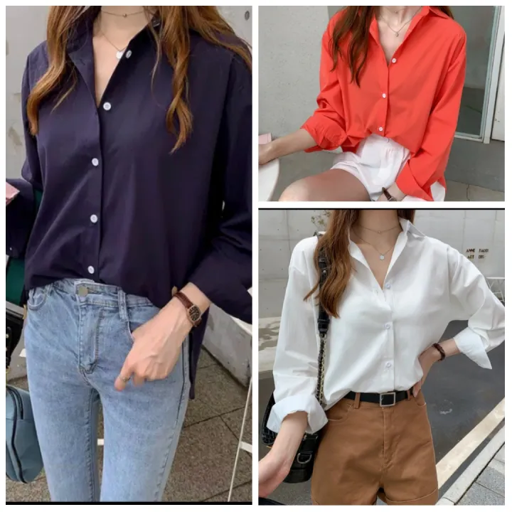 Kemeja Oversize Kemeja Wanita Polos Kemeja Lengan Panjang Korea Kemeja Putih Polos 1269 Olshop Fashion Olshop Wanita Di Carousell