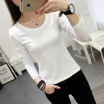 Minimalis Putih Kaos Lengan Panjang Wanita Membentuk Tubuh Musim Semi Dan Musim Gugur Baju Dalaman Wanita Model Pendek Baju Atasan Wanita Kaos Ketat Warna Polos Baju Kaos Lazada Indonesia