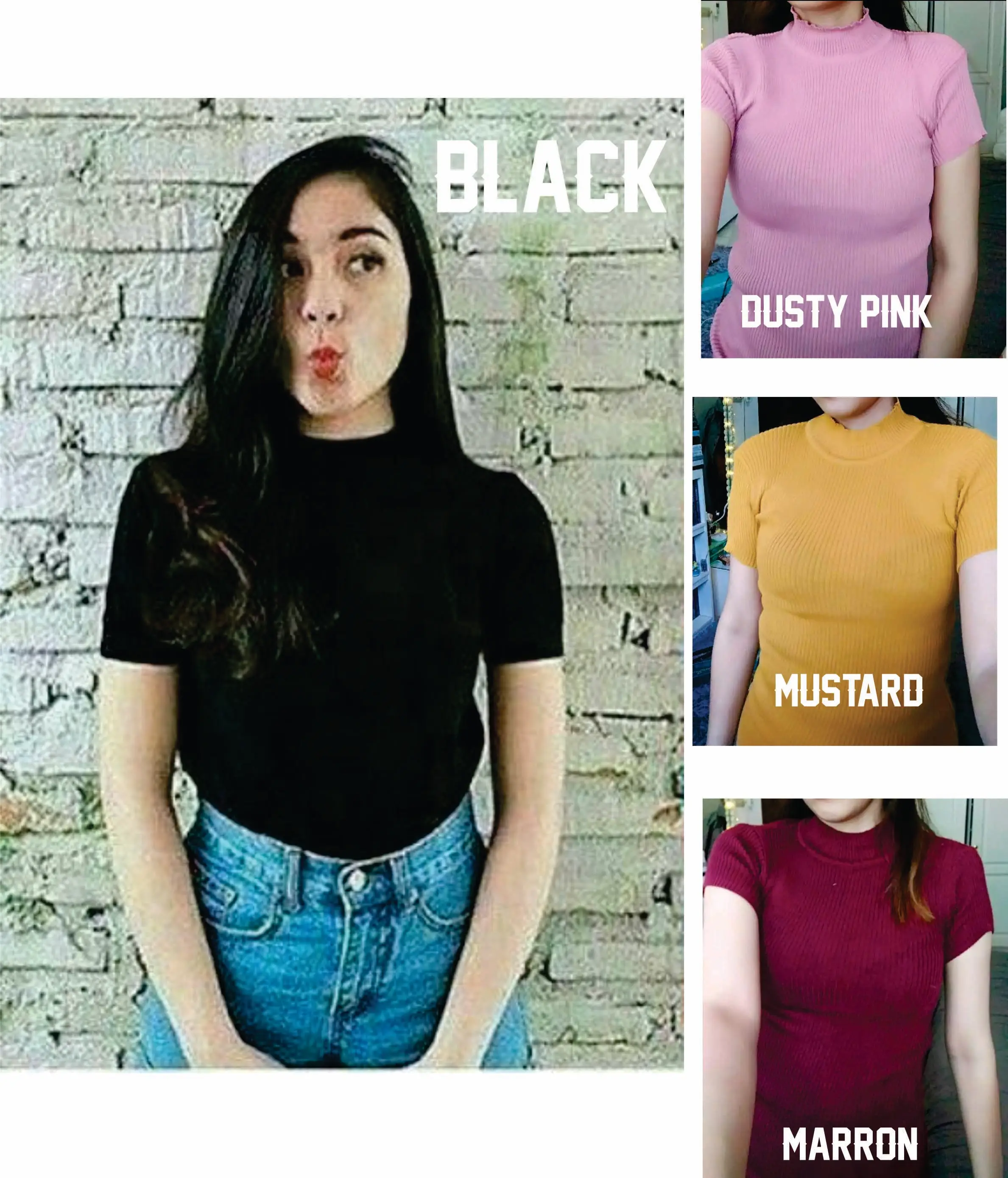 Top Line Turtleneck Atasan Rajut Rajut Lengan Pendek Baju Rajut Baju Rajut Wanita Murah Lazada Indonesia
