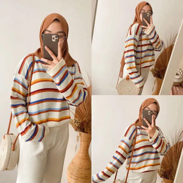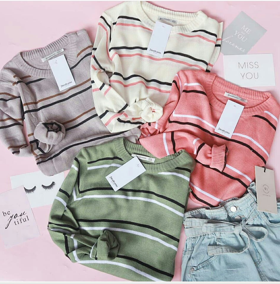 Zstore88 Moura Strip Bayar Di Tempat Sweater Rajut Wanita Baju Rajut Wanita Baju Rajut Kaos Rajut Baju Rajut Panjang Baju Rajut Halus Atasan Rajut