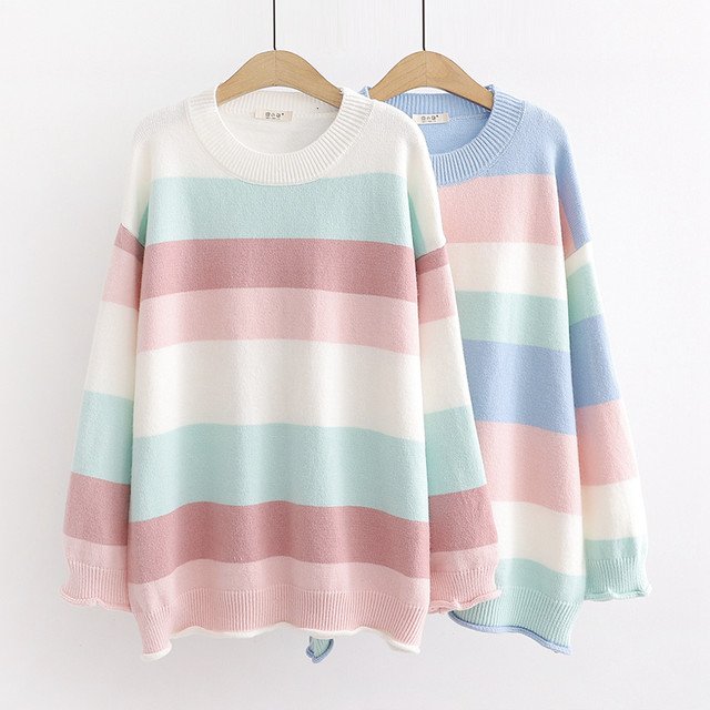 Sweater Stripy Rainbow Sweater Rajut Wanita Rajut Lengan Panjang Korea Sweater Rajut Oversize Sweater Wanita Garis Pelangi Baju Rajut Wanita Korea Sweater Wanita Korean Style Baju Wanita Terbaru 2020 Lazada Indonesia