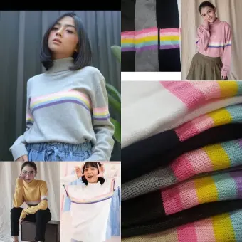 Sweater Rajut Rainbow Wanita Baju Murah Terbaru 2020 Bahan Rajut Kekinian Lazada Indonesia