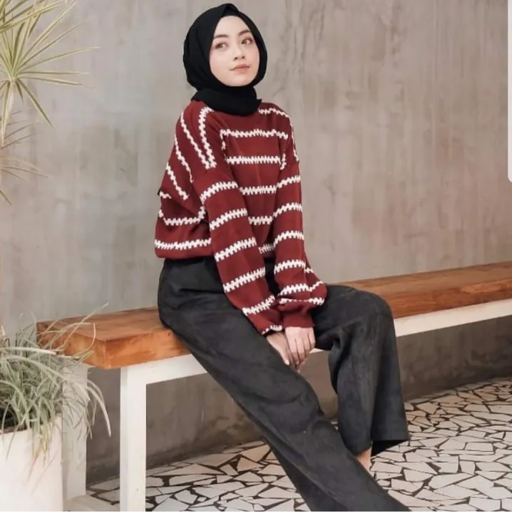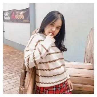 Baju Rajut Wanita Sweater Rajut Wanita Baju Rajut Wanita Lengan Panjang Baju Rajut Wanita Korea Rajut Wanita Bershka Stripe Lazada Indonesia