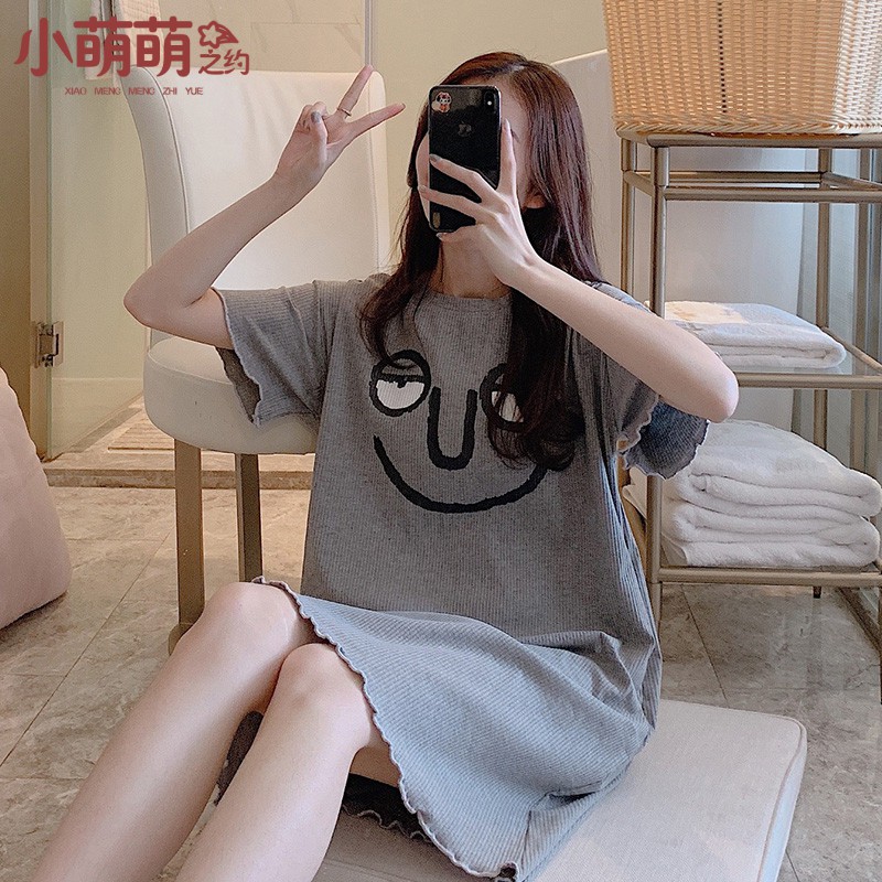 Pyjamas Pakaian Tidur Wanita Musim Panas Musim Panas Saiz Besar Pakaian Malam Lengan Pendek Wanita Korea Versi Baju Malam Longgar Wanita Musim Bunga Dan Musim Panas Boleh Memakai Perkhidmatan Rumah Wanita Nightdress