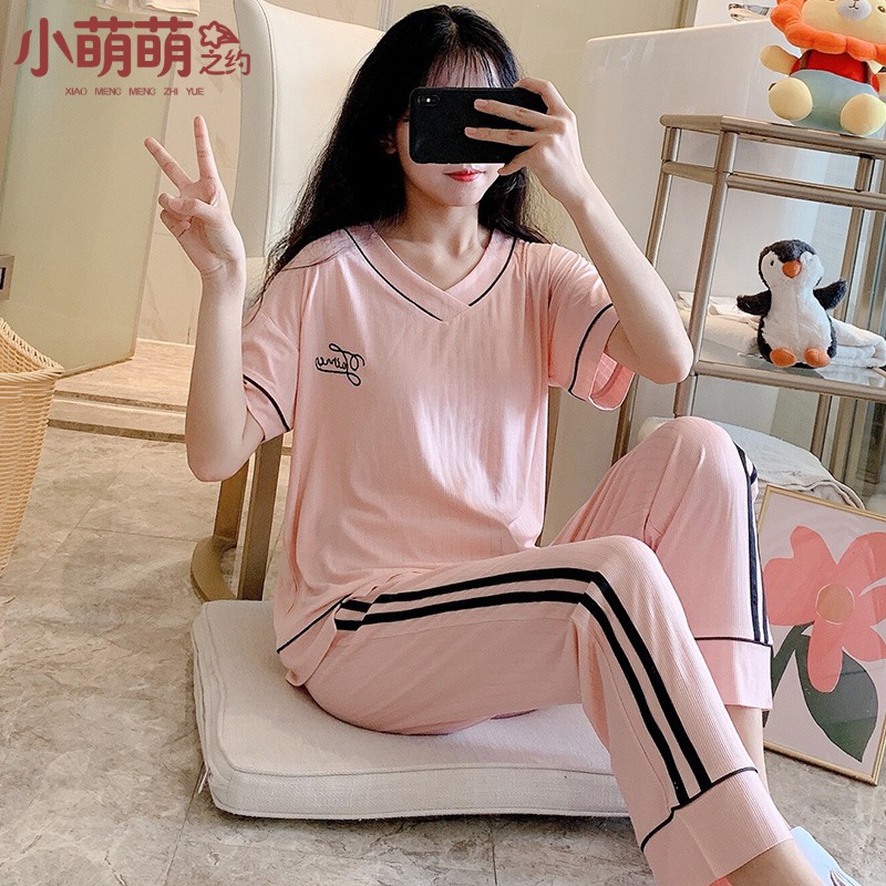 Musim Panas 2020 Mahasiswa Korea Baru Lengan Pendek Piyama Setelan Wanita Longgar Bisa Memakai Pakaian Rumah Dua Potong Ins Shopee Indonesia