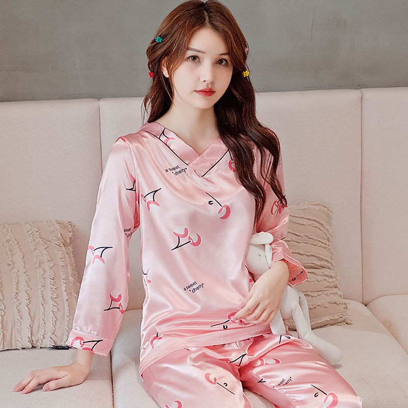 Piyama Wanita Sutera Ais Pelajar Lengan Panjang Bahagian Nipis Wanita Korea Comel Baju Tidur Baju Rumah Shopee Malaysia