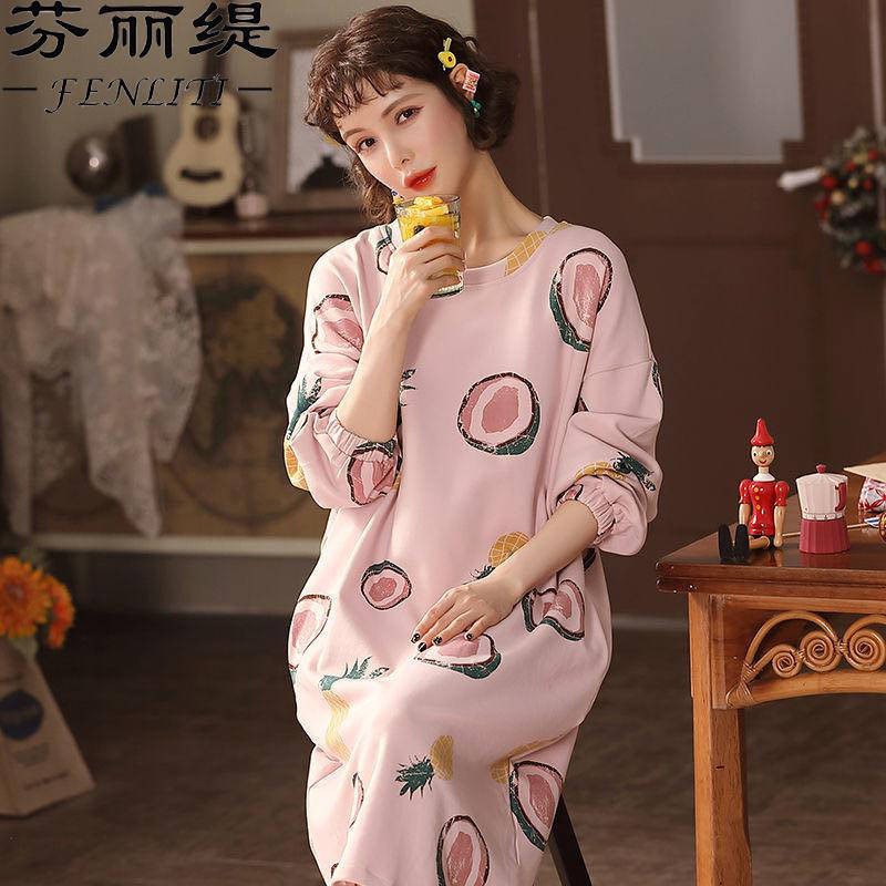 Pyjamas Satin Seluar Tidur Baju Sejuk Baju Perempuan Sleeping Dress Pakaian Rumah Korea Yang Comel Di Korea Baju Tidur Kapas Murni Wanita Musim Luruh Dan Musim Sejuk Ditambah Saiz 2xl 200jin Mm Mm Boleh Keluar