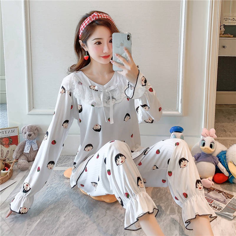 Perempuan Baju Tidur Baju Tidur Wanita Piyama Musim Bunga Dan Musim Luruh Wanita Korea Lengan Panjang Dan Manis Pakaian Renda Puteri Nipis Boleh Dipakai Di Luar Perkhidmatan Rumah Musim Bunga Dan Musim