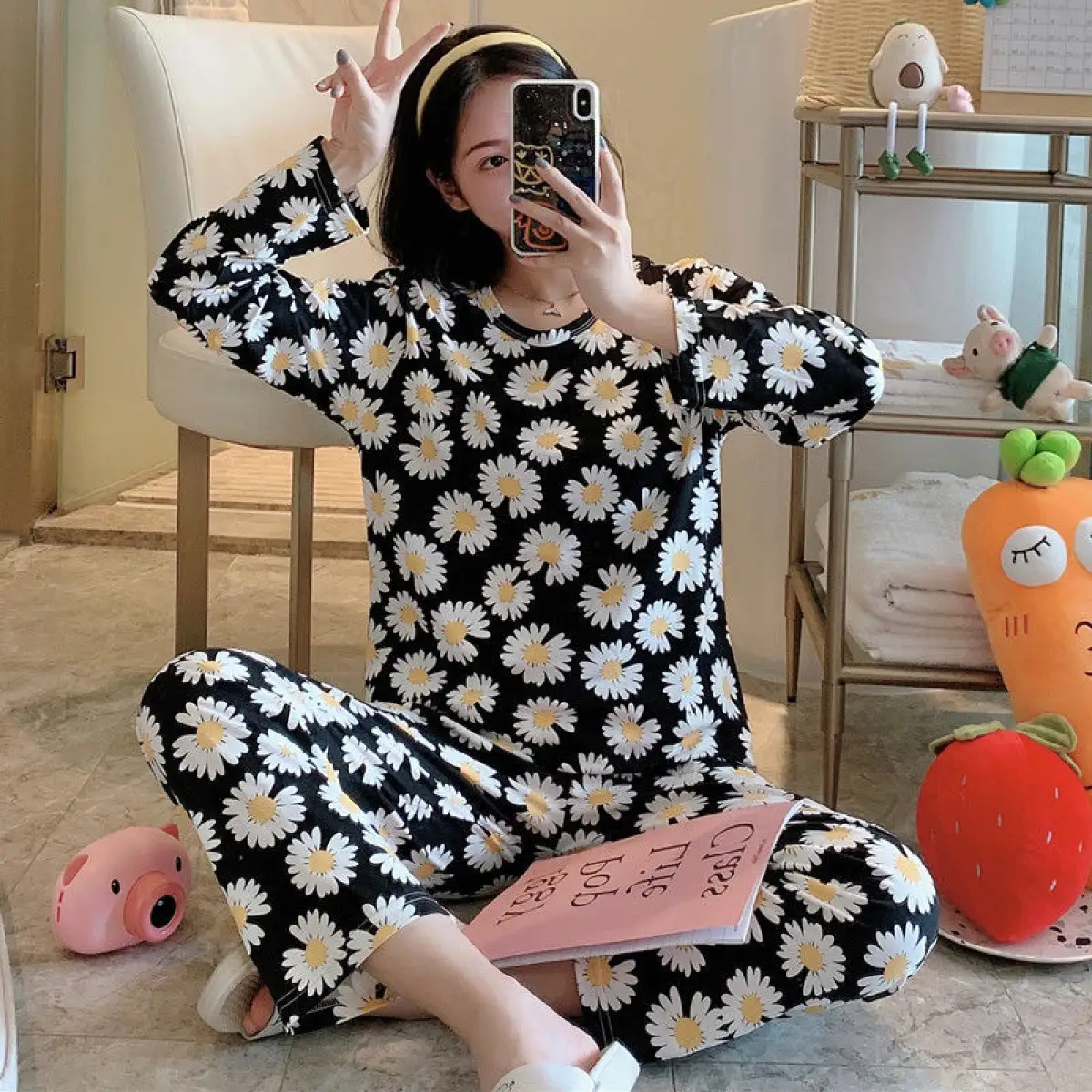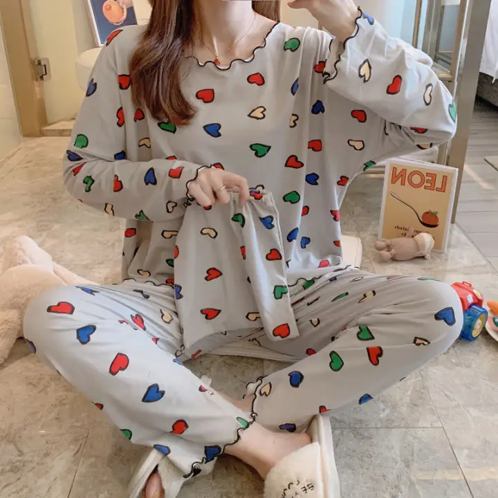 Hot Sale Wanita Baju Tidur Lengan Panjang Wanita Piyama Musim Semi Dan Musim Luruh Wanita Korea Yang Seksi Comel Dan Wanita Hamil Boleh Memakai Pakaian Rumah Bersaiz Besar Shopee Malaysia