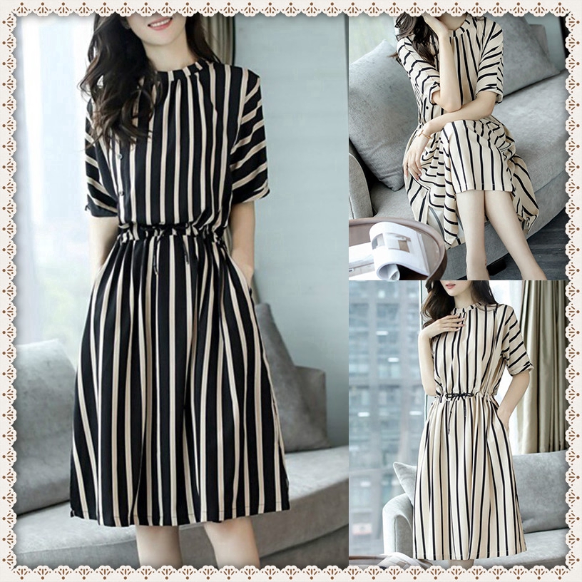 Yagami Dress Casual Leana Dress Korea Gaun Stripe Dress Bangkok Dress Selutut Dress Wanita Simple Kasual Dress Polos Casual Lazada Indonesia