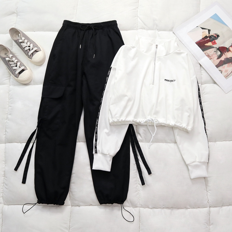 Musim Gugur Baru Sweater Pendek Wanita Setelan Kecil 2020 Gaya Asing Tipis Kasual Hip Hop Overall Se Shopee Indonesia