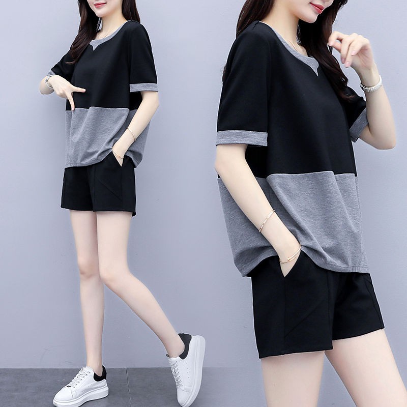 Diskon Waktu Terbatas Busana Lengan Pendek Ukuran Besar Setelan Perempuan Musim Panas Gaun 2020 Baru Longgar Longgar Celana Pendek Mengurangi Usia Penutup Perut Kasual Setelan Jas Dua Potong Shopee Indonesia