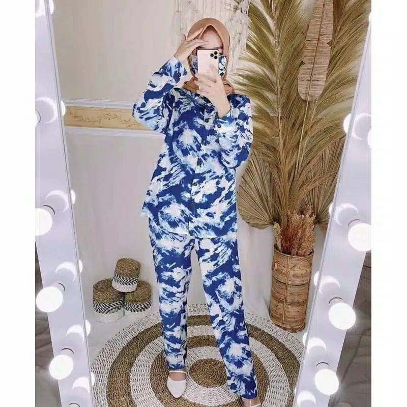 Basic Tie Die Setelan Celana Baju Bahan Katun Rayon Full Kancing Depan Terkini Tiedie Wanita Shopee Indonesia