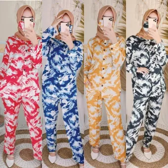 Setelan Baju Dan Celana Wanita Motif Tie Dye Lengan Pendek Ootd Kekinian 2020 Lazada Indonesia