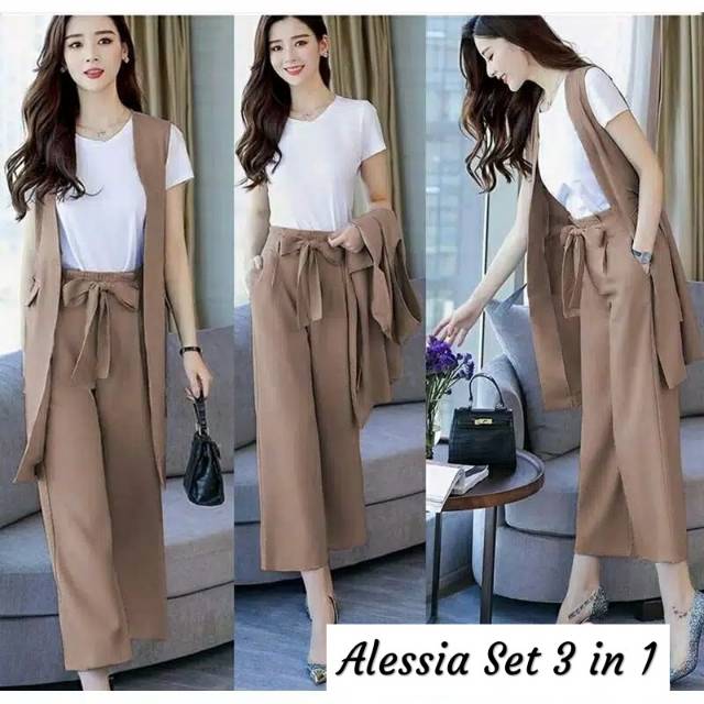 Promo Termurah Alessia Set 3 In 1 Baju Setelan Wanita Kekinian Modern Modis Babyterry Kantong Saku Shopee Indonesia