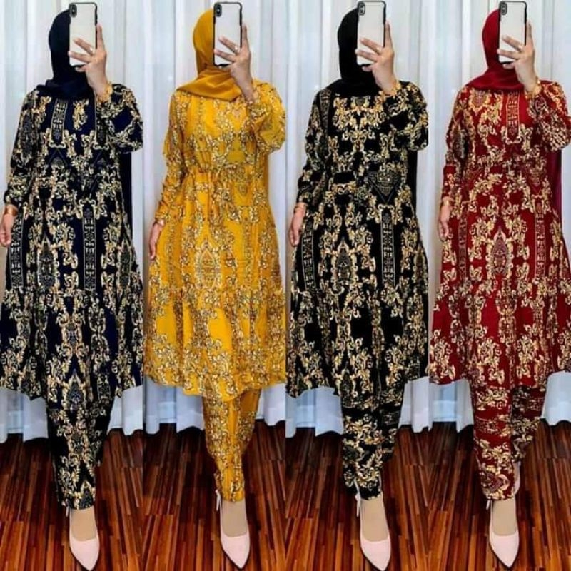 Jual Baju Setelan Wanita Jumbo Mina Set Setelan Celana Tunik Kekinian Hitz Kota Surakarta Myshopsolo Tokopedia
